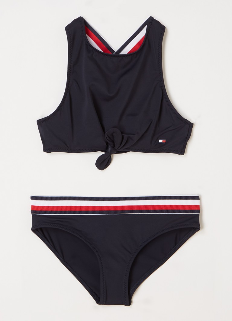 Deze meisjes bikini van Tommy Hilfiger bestaat uit een crop bikinitop en een bikinibroekje. De top is voorzien van een striksluiting. Het broekje heeft een elastische tailleband.Eerst passen en dan retourneren? Dat mag, zolang je aan onze retourvoorwaarden voldoet.
